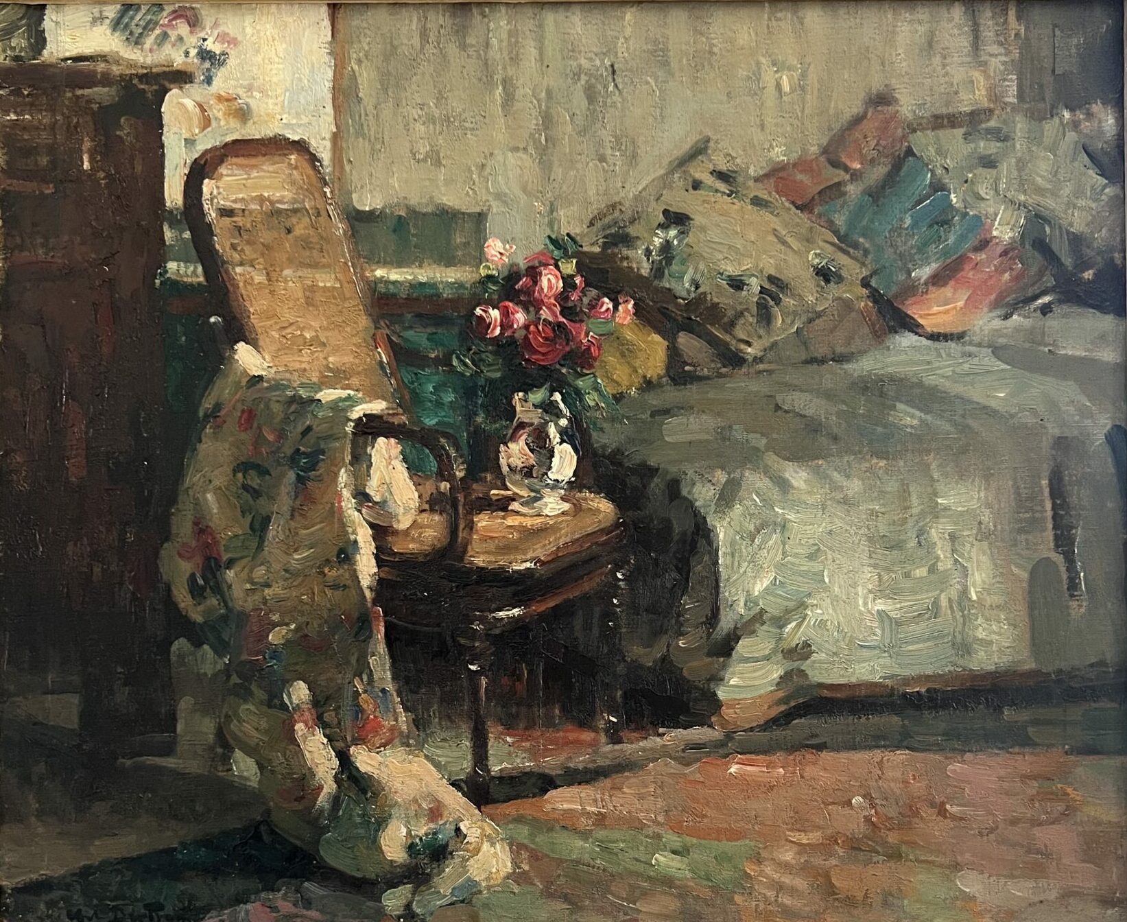 Les huiles Marines / paysages « Le village » – 46 x 38 « Le port de Gravelines » – 50 x 61 « Ciel d’orage » – 46 x 38 « Bord de seine » – 26 x 18,5 « Bord de mer » – 27 x 21 « Le village » – 46 x 38 « Bord de seine » – 26,5 x 19 « Paysage de Picardie 1915 » – 27 x 33 « La chaumière » – 32 x 41 « Promenade le long du canal » – 46 x 35 « Guilvinec Finistère » – 55 x 38 « Retour de pêche » – 27 x 35 « Les voiles rouges » – 33×24 « La chèvre blanche » – 100×81 « Le tréport » – 27×22 Portraits / scènes intimistes Buste de jeune femme – 35 x 27 « Au jardin » – 73 x 92 « La petite Yvonne » – 42 x 23 « La lecture » – 46 x 38 « La petite Eva » « L’enfant au bouquet » « La couture » Nus Nu à la couture – 54 x 65 Nu endormi – 41 x 23 Nu alangui 55 x 46 Rêverie 45,5 x 38 Nu à la serviette blanche – 51.5 x 32.5 Natures mortes « Nature morte au couteau » – 33 x 41 « Le bouquet de fleur » – 65 x 81 « Nature morte aux raisins » – 42 x 34 « Pichet et raisins » – 61 x 50 Le fauteuil 55 x 46 « Le bouquet » – 50 x 43